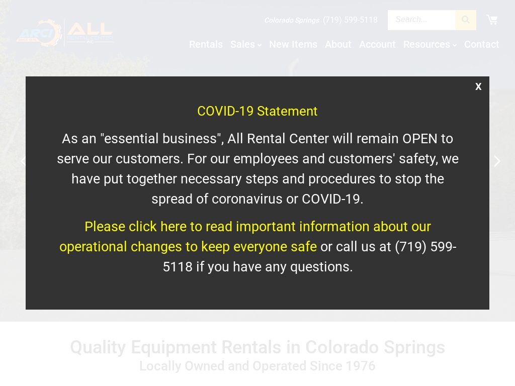 Colorado Springs 719 599-5118. From heavy equipment to small tool and accessory rentals we have what you need when and where you need it to get your construction project completed. Skip to main content Would you.