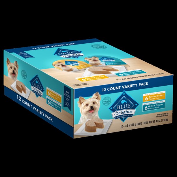 Blue Buffalo Delights Small Breed Roasted Turkey Grilled Chicken Pate Wet Dog Food Variety Pack For Adult Dogs Grain Free 3 5 Oz Cups 12 Pack Walmart Com